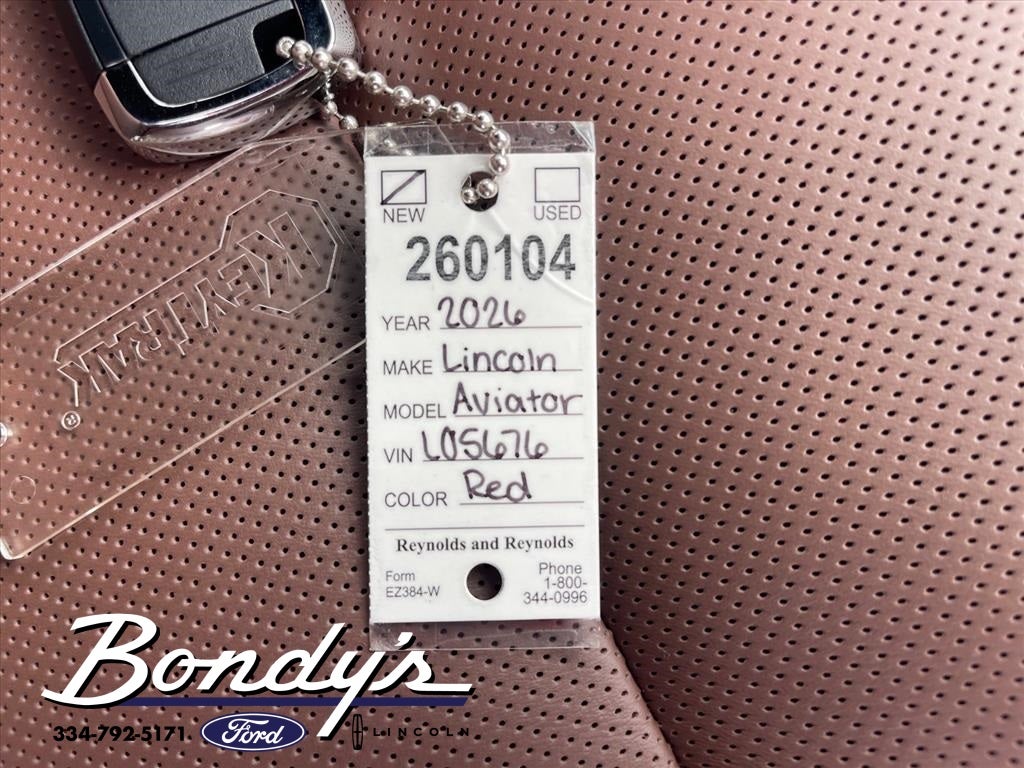 2026 Lincoln Aviator Reserve 14 Speakers, 3rd row seats: split-bench, 4-Wheel Disc Brakes, 40/Mini Console/40 Dual Captain's Chairs, ABS brakes, Adaptive suspension, Air Conditioning, Alloy wheels, AM/FM radio: SiriusXM, Apple CarPlay/Android Auto, Audio memory, Auto Heated and Ventilated Driver and Passenger Seats, Auto High-beam Headlights, Auto-dimming door mirrors, Auto-dimming Rear-View mirror, Automatic temperature control, Brake assist, Bumpers: body-color, Compass, Delay-off headlights, Driver door bin, Driver vanity mirror, Dual front impact airbags, Dual front side impact airbags, Electronic Stability Control, Emergency communication system: 911 Assist, Four wheel independent suspension, Front anti-roll bar, Front Bucket Seats, Front Center Armrest, Front dual zone A/C, Front reading lights, Fully automatic headlights, Garage door transmitter, Genuine wood console insert, Genuine wood dashboard insert, Heads-Up Display, Heated door mirrors, Heated front seats, Heated steering wheel, HVAC memory, Illuminated entry, Knee airbag, Leather steering wheel, Lincoln App, Lincoln BlueCruise Equipped (4-Years Included), Lincoln Connectivity Package (4-Years), Lincoln Digital Experience, Low tire pressure warning, Memory seat, Navigation system: Google Maps, Occupant sensing airbag, Outside temperature display, Overhead airbag, Overhead console, Panic alarm, Passenger door bin, Passenger vanity mirror, Power door mirrors, Power driver seat, Power Liftgate, Power moonroof: Panoramic Vista Roof, Power passenger seat, Power steering, Power windows, Premium Leather Front Captain's Chairs, Radio data system, Radio: Revel Audio System with 14 Speakers, Rain sensing wipers, Rear air conditioning, Rear anti-roll bar, Rear audio controls, Rear dual zone A/C, Rear reading lights, Rear window defroster, Rear window wiper, Remote keyless entry, Security system, SiriusXM, Speed control, Speed-Sensitive Wipers, Split folding rear seat, Spoiler, Steering wheel memory, Steering wheel mounted A/C controls, Steering wheel mounted audio controls, Tachometer, Telescoping steering wheel, Tilt steering wheel, Traction control, Trip computer, Turn signal indicator mirrors, Variably intermittent wipers, Ventilated front seats, Wheels: 21 Bright-Machined Aluminum with Dark Alloy Painted Pockets, Wireless Charging Pad.
