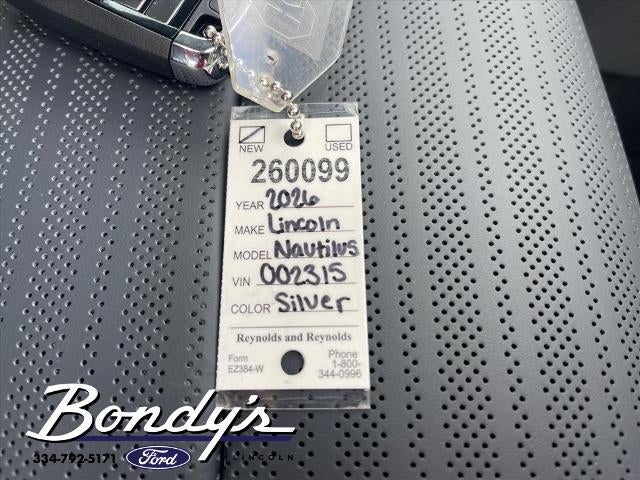 2026 Lincoln Nautilus Reserve 2.0L GTDI FHEV, 10 Speakers, 110V Power Converter, 4-Wheel Disc Brakes, ABS brakes, Adaptive suspension, Air Conditioning, Alloy wheels, AM/FM radio: SiriusXM with 360L, Apple CarPlay/Android Auto, Auto Air Refresh, Auto High-beam Headlights, Auto tilt-away steering wheel, Auto-dimming Rear-View mirror, Automatic temperature control, Black Exterior Elements, BlueCruise Equipped (4-Years Included), Body-Color Exterior Elements, Brake assist, Bumpers: body-color, Compass, Delay-off headlights, Digital Scent, Driver door bin, Driver vanity mirror, Dual front impact airbags, Dual front side impact airbags, Electronic Stability Control, Emergency communication system: 911 Assist, Equipment Group 202A Reserve II, Exterior Parking Camera Rear, Four wheel independent suspension, Front anti-roll bar, Front Bucket Seats, Front Center Armrest w/Storage, Front dual zone A/C, Front reading lights, Fully automatic headlights, Garage door transmitter, Hands-Free Power Liftgate, Heated door mirrors, Heated front seats, Heated steering wheel, Illuminated entry, Jet Appearance Package, Knee airbag, Leather steering wheel, Lincoln Connectivity Package, Lincoln Digital Experience, Low tire pressure warning, Memory seat, Navigation System, Occupant sensing airbag, Outside temperature display, Overhead airbag, Overhead console, Panic alarm, Panoramic Vista Roof with Powershade, Passenger door bin, Passenger vanity mirror, Power door mirrors, Power driver seat, Power Liftgate, Power passenger seat, Power steering, Power windows, Premium Leather Trimmed Captain's Chairs, Radio data system, Radio: AM/FM Revel Audio System, Rain sensing wipers, Rear anti-roll bar, Rear Heated Seats with Switch Control, Rear reading lights, Rear seat center armrest, Rear window defroster, Rear window wiper, Remote keyless entry, Security system, SiriusXM with 360L, Speed control, Speed-sensing steering, Speed-Sensitive Wipers, Split folding rear seat, Spoiler, Steering wheel memory, Steering wheel mounted audio controls, Tachometer, Telescoping steering wheel, Tilt steering wheel, Traction control, Trip computer, Turn signal indicator mirrors, Variably intermittent wipers, Ventilated front seats, Wheels: : 22 Satin Dark Luster Aluminum, 2.0L GTDI FHEV.