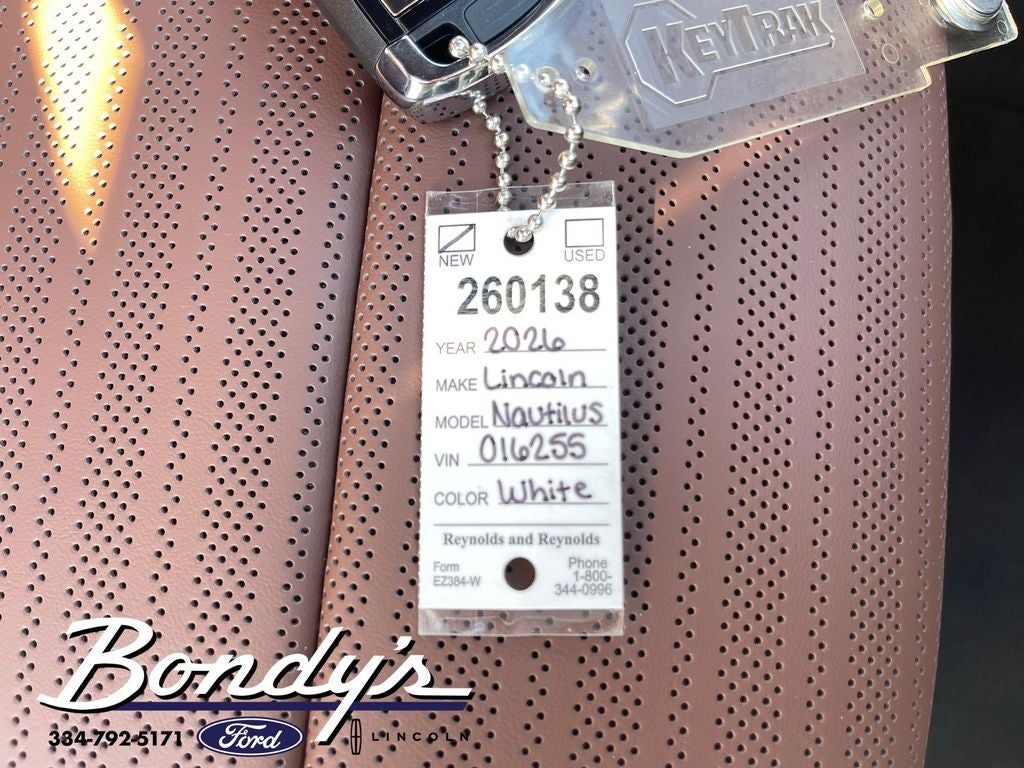 2026 Lincoln Nautilus Reserve 2.0L GTDI FHEV, 10 Speakers, 110V Power Converter, 4-Wheel Disc Brakes, ABS brakes, Adaptive suspension, Air Conditioning, Alloy wheels, AM/FM radio: SiriusXM with 360L, Apple CarPlay/Android Auto, Auto Air Refresh, Auto High-beam Headlights, Auto tilt-away steering wheel, Auto-dimming Rear-View mirror, Automatic temperature control, BlueCruise Equipped (4-Years Included), Brake assist, Bumpers: body-color, Compass, Delay-off headlights, Digital Scent, Driver door bin, Driver vanity mirror, Dual front impact airbags, Dual front side impact airbags, Electronic Stability Control, Emergency communication system: 911 Assist, Equipment Group 202A Reserve II, Exterior Parking Camera Rear, Four wheel independent suspension, Front anti-roll bar, Front Bucket Seats, Front Center Armrest w/Storage, Front dual zone A/C, Front reading lights, Fully automatic headlights, Garage door transmitter, Hands-Free Power Liftgate, Heated door mirrors, Heated front seats, Heated steering wheel, Illuminated entry, Knee airbag, Leather steering wheel, Lincoln App, Lincoln Connectivity Package, Lincoln Digital Experience, Low tire pressure warning, Memory seat, Navigation System, Occupant sensing airbag, Outside temperature display, Overhead airbag, Overhead console, Panic alarm, Panoramic Vista Roof with Powershade, Passenger door bin, Passenger vanity mirror, Power door mirrors, Power driver seat, Power Liftgate, Power passenger seat, Power steering, Power windows, Premium Leather Trimmed Captain's Chairs, Radio data system, Radio: AM/FM Revel Audio System, Rain sensing wipers, Rear anti-roll bar, Rear Heated Seats with Switch Control, Rear reading lights, Rear seat center armrest, Rear window defroster, Rear window wiper, Remote keyless entry, Security system, SiriusXM with 360L, Speed control, Speed-sensing steering, Speed-Sensitive Wipers, Split folding rear seat, Spoiler, Steering wheel memory, Steering wheel mounted audio controls, Tachometer, Telescoping steering wheel, Tilt steering wheel, Traction control, Trip computer, Turn signal indicator mirrors, Variably intermittent wipers, Ventilated front seats, 2.0L GTDI FHEV.