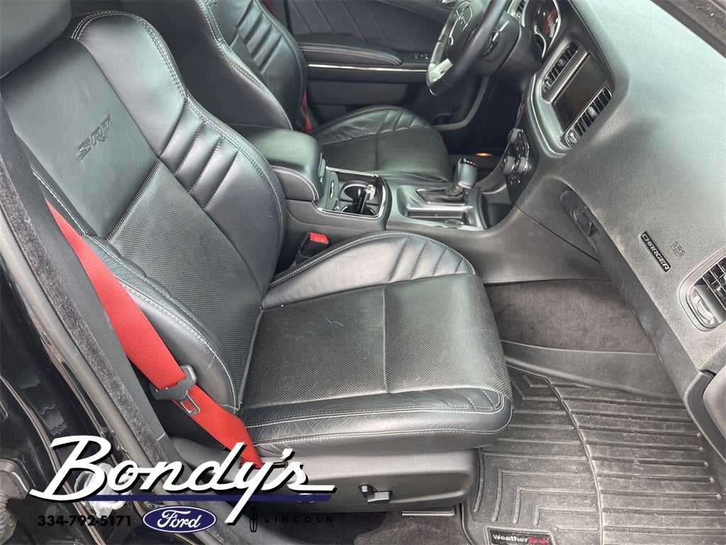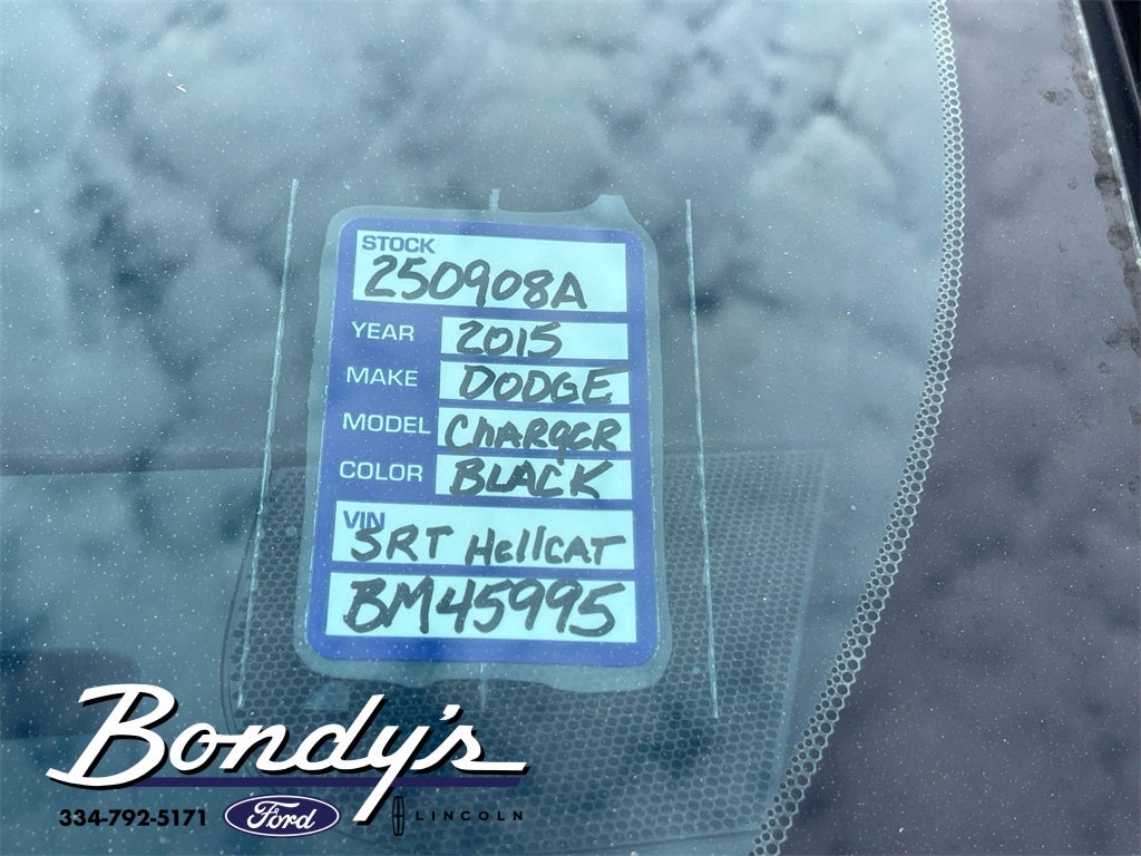 2015 Dodge Charger SRT Hellcat Black Leather, 19 harman/kardon Greenedge Speakers, 4-Wheel Disc Brakes, 5-Year SiriusXM Traffic Service, 5-Year SiriusXM Travel Link Service, 6 Speakers, 8.4 Touchscreen Display, ABS brakes, Air Conditioning, Alloy wheels, AM/FM radio: SiriusXM, Anti-whiplash front head restraints, Audio memory, Auto-dimming door mirrors, Auto-dimming Rear-View mirror, Automatic temperature control, Brake assist, Bumpers: body-color, Compass, Configurable Drive Mode, Delay-off headlights, Driver door bin, Driver vanity mirror, Dual front impact airbags, Dual front side impact airbags, Electronic Stability Control, Four wheel independent suspension, Front anti-roll bar, Front Bucket Seats, Front Center Armrest, Front dual zone A/C, Front Floor Mats, Front reading lights, Fully automatic headlights, Garage door transmitter: HomeLink, GPS Antenna Input, GPS Navigation, Harman Radio Manufacturer, harman/kardon Audio Group, harman/kardon GreenEdge Amp, HD Radio, Heated door mirrors, Heated front seats, Heated rear seats, Heated steering wheel, High intensity discharge headlights: Bi-Xenon, Illuminated entry, Integrated Voice Command w/Bluetooth®, Laguna Leather Package, Laguna Lux Perform SRT Emboss Logo, Leather Shift Knob, Low tire pressure warning, Media Hub (SD, USB, AUX), Memory seat, Occupant sensing airbag, Outside temperature display, Overhead airbag, Overhead console, Panic alarm, ParkView Rear Back-Up Camera, Passenger door bin, Passenger vanity mirror, Performance Shift Indicator, Power door mirrors, Power driver seat, Power passenger seat, Power steering, Power Sunroof, Power windows, Quick Order Package 23T, Radio data system, Radio: Uconnect 8.4, Radio: Uconnect 8.4 NAV, Rear anti-roll bar, Rear Floor Mats, Rear reading lights, Rear Seat Armrest w/Storage Cupholder, Rear window defroster, Red Seat Belts, Remote keyless entry, Security system, SIRIUSXM Satellite Radio, SIRIUSXM Traffic, SiriusXM Travel Link, Speed control, Speed-Sensitive Wipers, Split folding rear seat, Spoiler, Sport steering wheel, SRT Performance Info, Steering wheel mounted audio controls, Suede/Nappa Lux Perform SRT Logo, Tachometer, Telescoping steering wheel, Tilt steering wheel, Traction control, Trip computer, Uconnect Access, Variably intermittent wipers, Ventilated Front Seats, Ventilated front seats, Wheels: 20 x 9.5 SRT Low-Gloss Black Forged, Black Leather. Pitch Black RWD