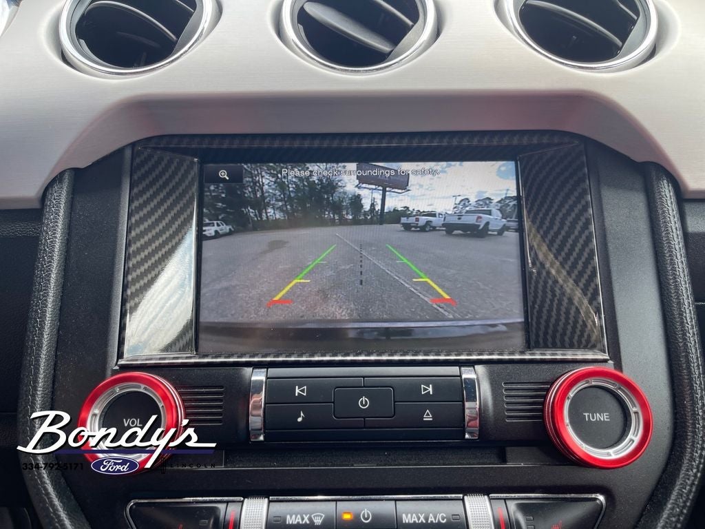 2015 Ford Mustang GT Premium 4-Wheel Disc Brakes, 9 Speakers, ABS brakes, Air Conditioning, Alloy wheels, AM/FM radio: SiriusXM, Auto-dimming Rear-View mirror, Automatic temperature control, Block heater, Brake assist, Bumpers: body-color, CD player, Compass, Convertible roof lining, Delay-off headlights, Driver door bin, Driver vanity mirror, Dual front impact airbags, Dual front side impact airbags, Electronic Stability Control, Equipment Group 400A, Exterior Parking Camera Rear, Four wheel independent suspension, Front anti-roll bar, Front Bucket Seats, Front Center Armrest, Front dual zone A/C, Front fog lights, Front reading lights, Fully automatic headlights, Garage door transmitter, Glass rear window, Heated door mirrors, Heated front seats, High-Intensity Discharge Headlights, Illuminated entry, Knee airbag, Leather Bucket Seats, Leather Shift Knob, Low tire pressure warning, Occupant sensing airbag, Outside temperature display, Panic alarm, Passenger door bin, Passenger vanity mirror, Power convertible roof, Power door mirrors, Power driver seat, Power passenger seat, Power steering, Power windows, Premier Trim w/Color Accent Group, Premium AM/FM Stereo w/Single CD Player, Radio data system, Rear anti-roll bar, Rear window defroster, Remote keyless entry, Security system, SiriusXM Radio, Speed control, Speed-sensing steering, Speed-Sensitive Wipers, Spoiler, Steering wheel mounted audio controls, SYNC Communications & Entertainment System, Tachometer, Telescoping steering wheel, Tilt steering wheel, Traction control, Trip computer, Turn signal indicator mirrors, Unique Door Trim, Variably intermittent wipers, Ventilated front seats, Voltmeter, Wheels: 18 x 8 Magnetic Painted/Machined. Magnetic Metallic RWD