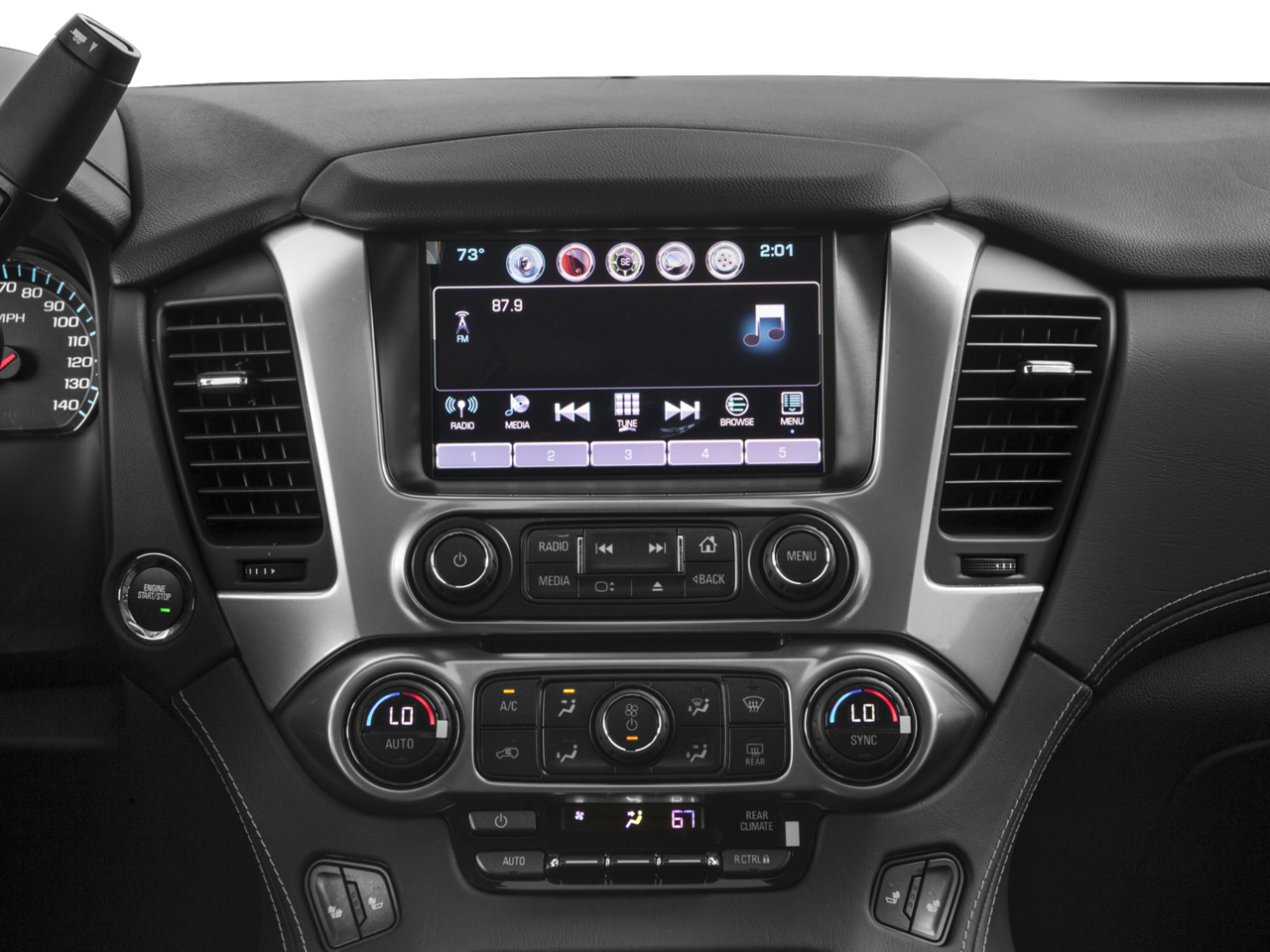 - Audio system, Chevrolet MyLink Radio with 8" diagonal color touch-screen AM/FM stereo with seek-and-scan and digital clock, includes Bluetooth streaming audio for music and select phones; voice-activated technology for radio and phone; and Shop with the ability to browse, select and install apps to your vehicle. You can customize your content with audio, weather and more; featuring Apple CarPlay and Android Auto capability for compatible phone; 5 USB ports and 1 auxiliary jack