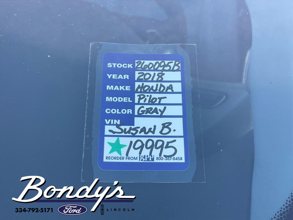2018 Honda Pilot Touring 10 Speakers, 20 Alloy Wheels, 3rd row seats: split-bench, 4-Wheel Disc Brakes, 4.334 Axle Ratio, A/V remote, ABS brakes, Air Conditioning, Alloy wheels, AM/FM radio: SiriusXM, Apple CarPlay/Android Auto, Auto-dimming Rear-View mirror, Automatic temperature control, Brake assist, Bumpers: body-color, Compass, Delay-off headlights, Driver door bin, Driver vanity mirror, Dual front impact airbags, Dual front side impact airbags, Electronic Stability Control, Emergency communication system: HondaLink Assist, Exterior Parking Camera Rear, Four wheel independent suspension, Front anti-roll bar, Front Bucket Seats, Front Center Armrest, Front dual zone A/C, Front fog lights, Front reading lights, Fully automatic headlights, Garage door transmitter: HomeLink, Headphones, Heated Front Bucket Seats, Heated front seats, Honda Satellite-Linked Navigation System, Illuminated entry, Leather Shift Knob, Leather-Trimmed Seats, Low tire pressure warning, Memory seat, Navigation System, Occupant sensing airbag, Outside temperature display, Overhead airbag, Overhead console, Panic alarm, Passenger door bin, Passenger vanity mirror, Power door mirrors, Power driver seat, Power Liftgate, Power moonroof, Power passenger seat, Power steering, Power windows, Radio data system, Radio: AM/FM Premium Audio System, Rear air conditioning, Rear anti-roll bar, Rear audio controls, Rear reading lights, Rear seat center armrest, Rear window defroster, Rear window wiper, Remote keyless entry, Roof rack: rails only, Security system, SiriusXM Radio, Speed control, Speed-sensing steering, Speed-Sensitive Wipers, Split folding rear seat, Spoiler, Steering wheel mounted audio controls, Tachometer, Telescoping steering wheel, Tilt steering wheel, Traction control, Trip computer, Turn signal indicator mirrors, Variably intermittent wipers. Modern Steel Metallic FWD