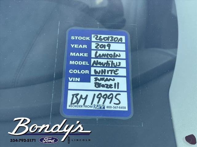2019 Lincoln Nautilus Reserve 13 Speakers, 3.80 Axle Ratio, 4-Wheel Disc Brakes, ABS brakes, Adaptive suspension, Air Conditioning, Alloy wheels, AM/FM radio: SiriusXM, AppLink/Apple CarPlay and Android Auto, Auto High-beam Headlights, Auto tilt-away steering wheel, Auto-dimming door mirrors, Auto-dimming Rear-View mirror, Automatic temperature control, Brake assist, Bumpers: body-color, CD player, Compass, Delay-off headlights, Driver door bin, Driver vanity mirror, Dual front impact airbags, Dual front side impact airbags, Electronic Stability Control, Emergency communication system: 911 Assist, Equipment Group 300A, Exterior Parking Camera Rear, Four wheel independent suspension, Front anti-roll bar, Front Bucket Seats, Front Center Armrest w/Storage, Front dual zone A/C, Front fog lights, Front reading lights, Fully automatic headlights, Garage door transmitter: HomeLink, Genuine wood console insert, Genuine wood door panel insert, Heated door mirrors, Heated front seats, Heated rear seats, Heated steering wheel, Illuminated entry, Knee airbag, Leather steering wheel, Low tire pressure warning, Memory seat, Navigation System, Occupant sensing airbag, Outside temperature display, Overhead airbag, Overhead console, Panic alarm, Passenger door bin, Passenger vanity mirror, Power door mirrors, Power driver seat, Power Liftgate, Power moonroof: Panoramic Vista Roof, Power passenger seat, Power steering, Power windows, Prem Lthr-Trimmed Heated/Cooled Bucket Seats, Radio data system, Radio: Revel Audio w/Single-CD, HD & Nav, Rain sensing wipers, Rear anti-roll bar, Rear reading lights, Rear seat center armrest, Rear window defroster, Rear window wiper, Remote keyless entry, Satin Roof Rack Side Rails w/o Crossbars, Security system, Speed control, Speed-sensing steering, Speed-Sensitive Wipers, Split folding rear seat, Spoiler, Steering wheel memory, Steering wheel mounted A/C controls, Steering wheel mounted audio controls, SYNC 3 Communications & Entertainment System, Tachometer, Telescoping steering wheel, Tilt steering wheel, Traction control, Trip computer, Turn signal indicator mirrors, Variably intermittent wipers, Ventilated front seats, Voice-Activated Touchscreen Navigation System, Wheels: 20 Prem Painted Bright Machined Alum. White Platinum Clearcoat Metallic FWD