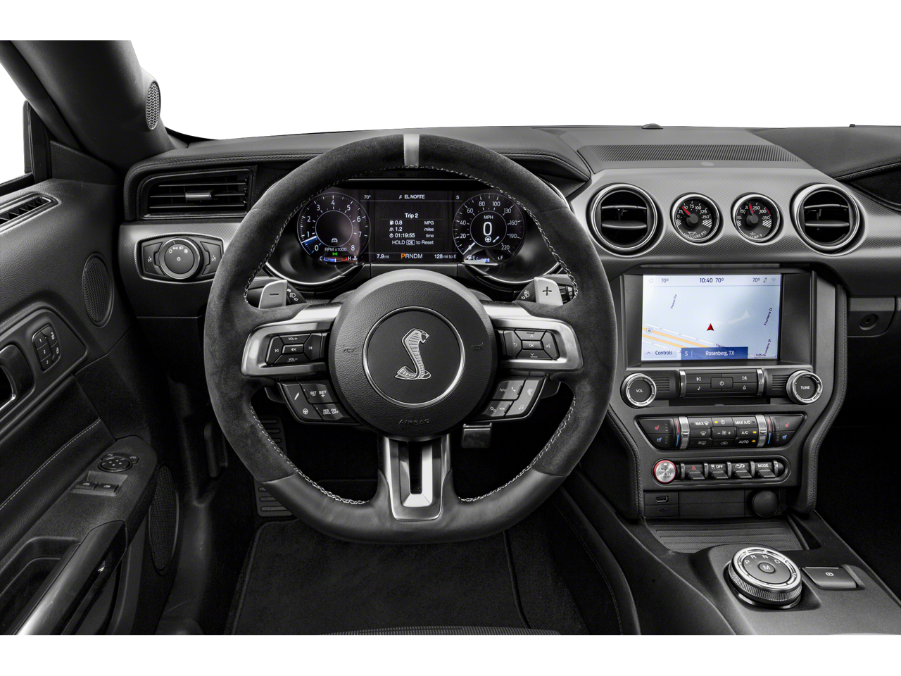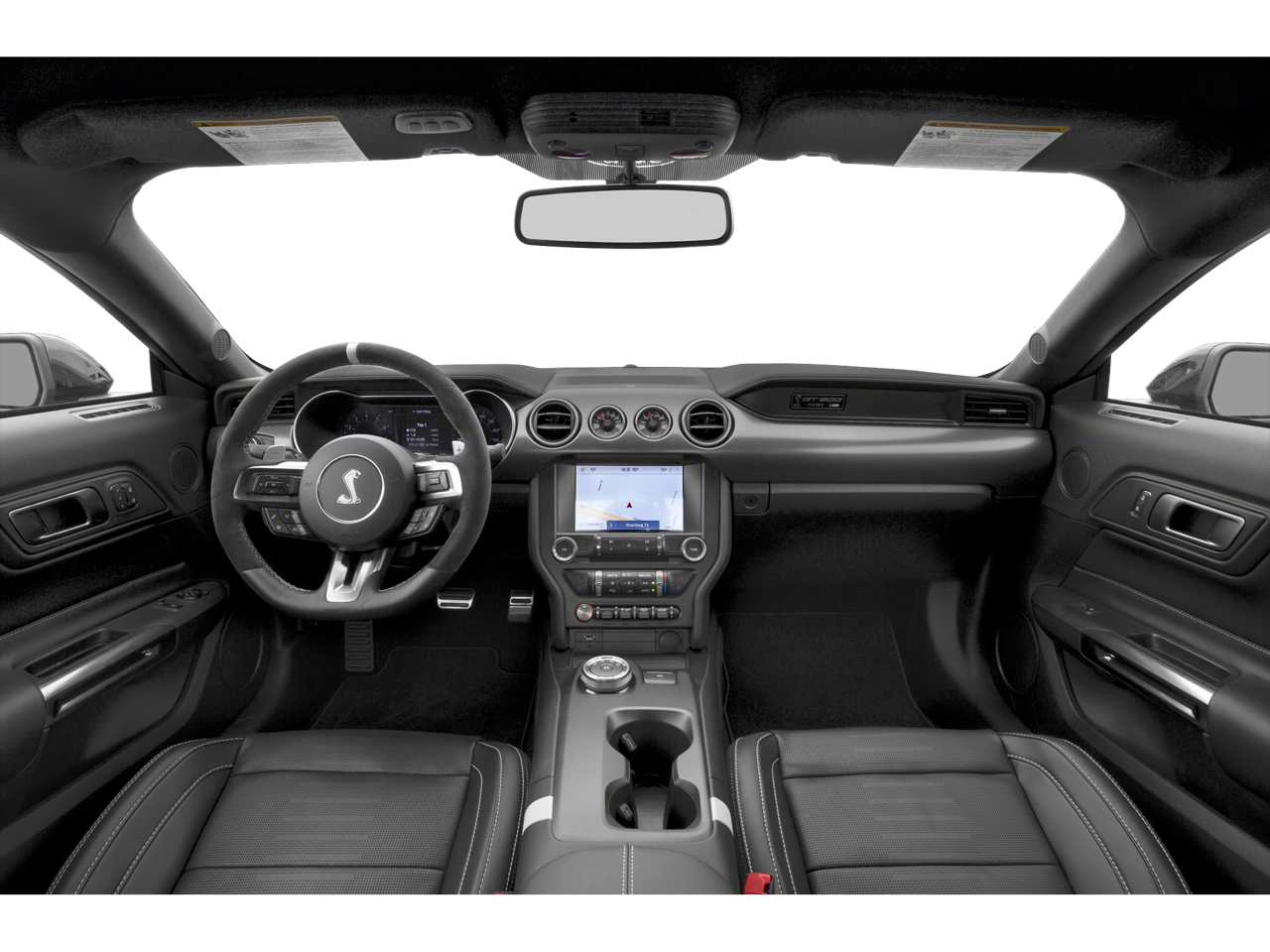 2021 Ford Mustang Shelby GT500 20 Wheels, 4-Wheel Disc Brakes, 9 Speakers, ABS brakes, Adaptive suspension, Air Conditioning, Alloy wheels, AM/FM radio: SiriusXM, AM/FM Stereo, Auto-dimming Rear-View mirror, Automatic temperature control, Black Indoor Car Cover (Dealer Installed), BLIS Blind Spot Information System, Brake assist, Bumpers: body-color, CD player, Climate Controlled Front Seats, Compass, Delay-off headlights, Driver door bin, Driver vanity mirror, Dual front impact airbags, Dual front side impact airbags, Electronic Stability Control, Emergency communication system: 911 Assist, Equipment Group 950A, Exterior Parking Camera Rear, Four wheel independent suspension, Front anti-roll bar, Front Bucket Seats, Front Center Armrest, Front dual zone A/C, Front reading lights, Fully automatic headlights, Garage door transmitter, Handling Package, Heated front seats, Heated Mirrors, High-Intensity Discharge Headlights, Illuminated entry, Knee airbag, Leather-Trimmed Sport Seats, Low tire pressure warning, Navigation System, Occupant sensing airbag, Outside temperature display, Overhead airbag, Panic alarm, Passenger door bin, Passenger vanity mirror, Power door mirrors, Power driver seat, Power passenger seat, Power steering, Power windows, Radio data system, Radio: B&O Sound System by Bang & Olufsen, Rear anti-roll bar, Rear window defroster, Remote keyless entry, Security system, SiriusXM Radio, Speed control, Speed-sensing steering, Speed-Sensitive Wipers, Split folding rear seat, Spoiler, Sport steering wheel, Steering wheel mounted audio controls, SYNC 3 Communications & Entertainment System, Tachometer, Technology Package, Telescoping steering wheel, Tilt steering wheel, Traction control, Trip computer, Variably intermittent wipers, Ventilated front seats, Vinyl Over-the-Top Racing Stripe, Vinyl Side Stripes, Voice-Activated Touch-Screen Navigation System, Voltmeter, Wheels: 20 Flow Formed High Gloss Black Aluminum. Oxford White RWD