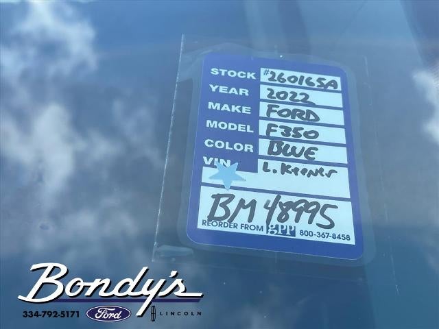 2022 Ford F-350SD XLT 4WD, 110V/400W Outlet, 4-Wheel Disc Brakes, 5th Wheel/Gooseneck Hitch Prep Package, 6 Angular Bright Polished Step Bar, 7 Speakers, ABS brakes, Air Conditioning, Alloy wheels, AM/FM radio: SiriusXM, Auto High-beam Headlights, Brake assist, Bumpers: chrome, Camper Package, Cloth 40/20/40 Split Bench Seat, Compass, Delay-off headlights, Driver door bin, Driver vanity mirror, Dual front impact airbags, Dual front side impact airbags, Electronic Stability Control, Emergency communication system: SYNC 3 911 Assist, Exterior Parking Camera Rear, Front & Rear Wheel Well Liners (Pre-Installed), Front anti-roll bar, Front Center Armrest w/Storage, Front reading lights, Fully automatic headlights, GVWR: 11,300 lb Payload Package, Heated door mirrors, Illuminated entry, Low tire pressure warning, Order Code 613A, Outside temperature display, Overhead airbag, Overhead console, Panic alarm, Passenger door bin, Passenger vanity mirror, Power door mirrors, Power steering, Power windows, Privacy Glass, Radio data system, Radio: AM/FM Stereo/MP3 Player, Rear reading lights, Rear Stabilizer Bar, Rear step bumper, Remote keyless entry, Security system, SiriusXM Radio, Speed control, Split folding rear seat, Steering wheel mounted audio controls, SYNC 3 Communications & Entertainment System, Tachometer, Telescoping steering wheel, Tilt steering wheel, Tough Bed Spray-In Bedliner, Traction control, Trip computer, Turn signal indicator mirrors, Variably intermittent wipers, Wheels: 18 Sparkle Silver Painted Cast Aluminum, 4WD. Blue Metallic 4WD