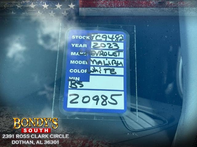 2023 Chevrolet Malibu LS 1FL Black Cloth, 16 Aluminum Wheels, 4-Wheel Disc Brakes, 6 Speakers, 6-Speaker Audio System Feature, 6-Way Manual Driver Seat Adjuster, 6-Way Manual Front Passenger Seat Adjuster, 8-Way Power Driver Seat Adjuster, ABS brakes, Air Conditioning, Alloy wheels, AM/FM radio, Apple CarPlay/Android Auto, Auto High-beam Headlights, Brake assist, Bumpers: body-color, Compass, Delay-off headlights, Deleted 3 Years of Remote Access, Driver Confidence Package, Driver door bin, Driver vanity mirror, Dual front impact airbags, Dual front side impact airbags, Electronic Stability Control, Emergency communication system: OnStar and Chevrolet connected services capable, Exterior Parking Camera Rear, Four wheel independent suspension, Front anti-roll bar, Front Bucket Seats, Front Center Armrest, Front reading lights, Fully automatic headlights, Illuminated entry, Knee airbag, Lane Change Alert w/Side Blind Zone Alert (DISC), Low tire pressure warning, Occupant sensing airbag, Outside Power-Adjustable Body-Color Mirrors, Outside temperature display, Overhead airbag, Overhead console, Panic alarm, Passenger door bin, Passenger vanity mirror, Power door mirrors, Power Driver Lumbar Control Seat Adjuster, Power steering, Power windows, Preferred Equipment Group 1FL, Premium audio system: Chevrolet Infotainment 3, Premium Cloth Seat Trim, Radio data system, Radio: Chevrolet Infotainment 3 System, Rear anti-roll bar, Rear Cross Traffic Alert (DISC), Rear Park Assist, Rear side impact airbag, Rear window defroster, Remote keyless entry, Security system, Speed control, Split folding rear seat, Steering wheel mounted audio controls, Tachometer, Telescoping steering wheel, Tilt steering wheel, Traction control, Trip computer, Variably intermittent wipers, Voltmeter, Wireless Apple CarPlay/Android Auto, Black Cloth. 1FL Summit White FWD