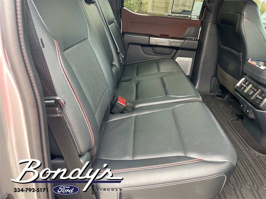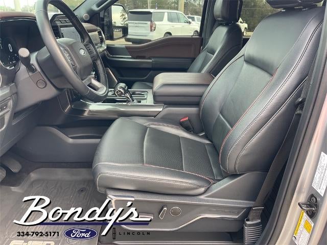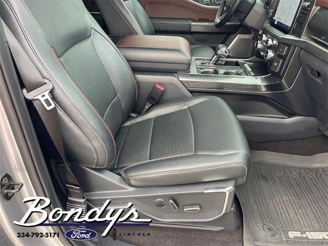 2023 Ford F-150 Lariat 4WD, 360 Degree Camera, 4-Wheel Disc Brakes, 6 Extended Dark Gray Accent Running Board, 8 Speakers, ABS brakes, Accent-Color Angular Step Bars, Adjustable pedals, Air Conditioning, Alloy wheels, AM/FM radio: SiriusXM with 360L, Auto High-beam Headlights, Auto-dimming door mirrors, Auto-dimming Rear-View mirror, Automatic temperature control, Bed Utility Package, Body-Color Front & Rear Bumpers, Box Side Decals, BoxLink, Brake assist, Bumpers: chrome, Chrome Single-Tip Exhaust, Chrome wheels, Class IV Trailer Hitch Receiver, Compass, Connected Built-In Navigation, Dark 2-Bar & 1 Minor Bar Style Grille, Delay-off headlights, Driver door bin, Driver vanity mirror, Dual front impact airbags, Dual front side impact airbags, Electronic Stability Control, Emergency communication system: SYNC 4 911 Assist, Equipment Group 502A High, Evasive Steering Assist, Extended Range 36 Gallon Fuel Tank, Exterior Parking Camera Rear, Ford Co-Pilot360 Assist 2.0, Front anti-roll bar, Front Bucket Seats, Front Center Armrest, Front dual zone A/C, Front fog lights, Front reading lights, Front wheel independent suspension, Fully automatic headlights, Garage door transmitter, Heated door mirrors, Heated front seats, Heated steering wheel, Illuminated entry, Integrated Trailer Brake Controller, Intelligent Adaptive Cruise Control w/Stop & Go, Intersection Assist, Lariat Sport Appearance Package, Leather-Trimmed Bucket Seats, LED Box Lighting, LED Sideview Mirror Spotlights, Low tire pressure warning, Max Trailer Tow Package, Memory seat, Occupant sensing airbag, Outside temperature display, Overhead airbag, Overhead console, Panic alarm, Passenger door bin, Passenger vanity mirror, Pedal memory, Power door mirrors, Power driver seat, Power passenger seat, Power steering, Power Tailgate, Power Telescoping/Glass/Folding Trailer Tow Mirrors, Power windows, Pro Power Onboard - 2KW, Pro Trailer Backup Assist & Pro Trailer Hitch Assist, Radio data system, Radio: B&O Sound System by Bang & Olufsen, Radio: B&O Unleashed Sound System by Bang & Olufsen, Rear reading lights, Rear seat center armrest, Rear step bumper, Rear window defroster, Remote keyless entry, Security system, Speed control, Speed Sign Recognition, Speed-sensing steering, Split folding rear seat, Steering Wheel Heat Removal (DISC), Steering wheel mounted audio controls, SYNC 4 w/Enhanced Voice Recognition, Tachometer, Tailgate Step w/Tailgate Work Surface, Telescoping steering wheel, Tilt steering wheel, Traction control, Trip computer, Turn signal indicator mirrors, Twin Panel Moonroof, Variably intermittent wipers, Ventilated front seats, Voltmeter, Wheels: 18 Chrome-Like PVD, 4WD. Silver Metallic 4WD