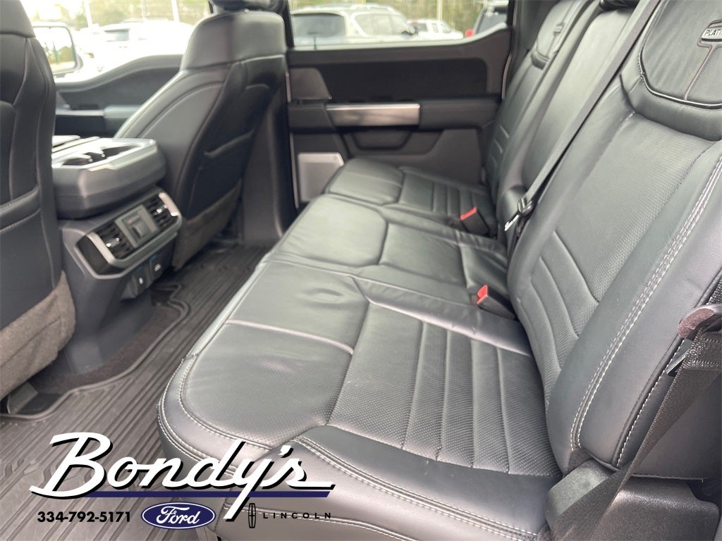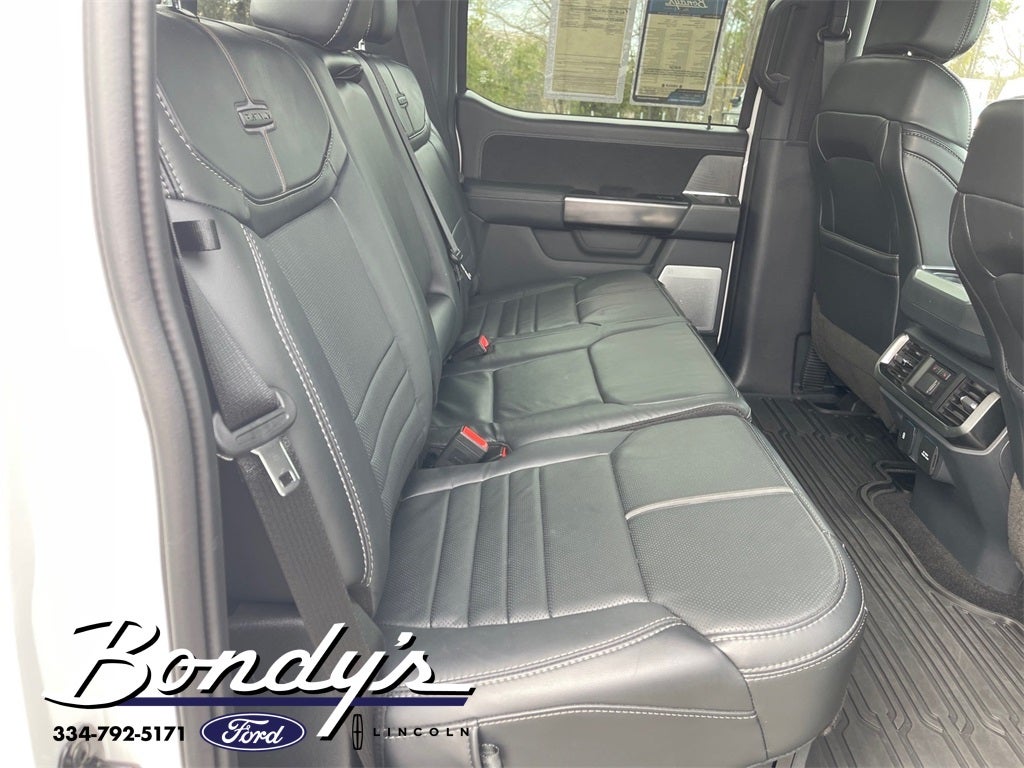 2023 Ford F-150 Platinum 4WD, 20 Polished Aluminum Wheels, 360 Degree Camera, 4-Wheel Disc Brakes, 4x4 FX4 Off-Road Bodyside Decal, 8 Speakers, ABS brakes, Active Park Assist 2.0, Active Park Assist 2.0 Removal, Adjustable pedals, Air Conditioning, Alloy wheels, AM/FM radio: SiriusXM with 360L, Auto High-beam Headlights, Auto Start-Stop Removal (DISC), Auto tilt-away steering wheel, Auto-dimming door mirrors, Auto-dimming Rear-View mirror, Automatic temperature control, Bed Utility Package, BoxLink, Brake assist, Bumpers: body-color, Class IV Trailer Hitch Receiver, Compass, Delay-off headlights, Driver door bin, Driver vanity mirror, Dual front impact airbags, Dual front side impact airbags, Electronic Stability Control, Emergency communication system: SYNC 4 911 Assist, Equipment Group 701A High, Extended Range 36 Gallon Fuel Tank, Exterior Parking Camera Rear, Ford BlueCruise 1.0, Front anti-roll bar, Front Bucket Seats, Front Center Armrest, Front dual zone A/C, Front fog lights, Front reading lights, Front wheel independent suspension, Fully automatic headlights, FX4 Off-Road Package, Garage door transmitter, Heated door mirrors, Heated front seats, Heated rear seats, Heated steering wheel, Hill Descent Control, Illuminated entry, Inclination/Intrusion Sensor Removal, Integrated Trailer Brake Controller, Interior Work Surface, LED Box Lighting, LED Sideview Mirror Spotlights, Low tire pressure warning, Memory seat, Monotube Rear Shocks, Multicontour Seats w/Active Motion Removal, Occupant sensing airbag, Off-Road Tuned Front Shock Absorbers, Outside temperature display, Overhead airbag, Overhead console, Panic alarm, Passenger door bin, Passenger vanity mirror, Pedal memory, Power door mirrors, Power driver seat, Power passenger seat, Power steering, Power Tailgate, Power windows, Pro Trailer Backup Assist & Pro Trailer Hitch Assist, Radio data system, Radio: B&O Sound System by Bang & Olufsen, Radio: B&O Unleashed Sound System by Bang & Olufsen, Rain sensing wipers, Rear reading lights, Rear seat center armrest, Rear step bumper, Rear window defroster, Remote keyless entry, Rock Crawl Mode, Security system, Speed control, Speed-sensing steering, Split folding rear seat, Steering Wheel Heat Removal (DISC), Steering wheel memory, Steering wheel mounted audio controls, SYNC 4 w/Enhanced Voice Recognition, Tachometer, Tailgate Step w/Tailgate Work Surface, Telescoping steering wheel, Tilt steering wheel, Tough Bed Spray-In Bedliner, Traction control, Tray Style Floor Liner, Trip computer, Turn signal indicator mirrors, Twin Panel Moonroof, Unique Multi-Contour Leather Bucket Seats, Variably intermittent wipers, Ventilated front seats, Voltmeter, 4WD. Star White Metallic Tri-Coat 4WD