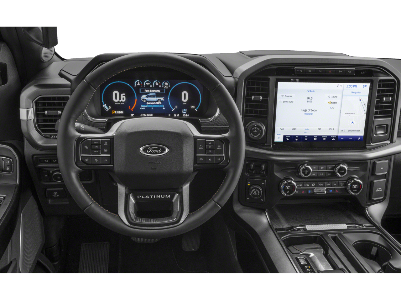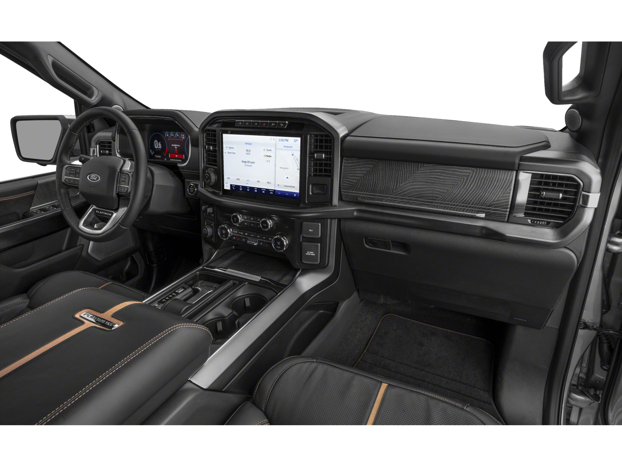2023 Ford F-150 Platinum 3.5L PowerBoost Full-Hybrid V6, 4WD, 20 Polished Aluminum Wheels, 360 Degree Camera, 4-Wheel Disc Brakes, 4x4 FX4 Off-Road Bodyside Decal, 8 Speakers, ABS brakes, Active Park Assist 2.0, Active Park Assist 2.0 Removal, Adjustable pedals, Air Conditioning, Alloy wheels, AM/FM radio: SiriusXM with 360L, Auto High-beam Headlights, Auto Start-Stop Removal (DISC), Auto tilt-away steering wheel, Auto-dimming door mirrors, Auto-dimming Rear-View mirror, Automatic temperature control, Bed Utility Package, BoxLink, Brake assist, Bumpers: body-color, Center High-Mounted Stop Lamp CHMSL Camera Removal, Class IV Trailer Hitch Receiver, Compass, Delay-off headlights, Driver door bin, Driver vanity mirror, Dual front impact airbags, Dual front side impact airbags, Electronic Stability Control, Emergency communication system: SYNC 4 911 Assist, Equipment Group 701A High, Extended Range 36 Gallon Fuel Tank, Exterior Parking Camera Rear, Ford BlueCruise 1.0, Front anti-roll bar, Front Bucket Seats, Front Center Armrest, Front dual zone A/C, Front fog lights, Front reading lights, Front wheel independent suspension, Fully automatic headlights, FX4 Off-Road Package, Garage door transmitter, Heated door mirrors, Heated front seats, Heated rear seats, Heated steering wheel, Hill Descent Control, Illuminated entry, Inclination/Intrusion Sensor Removal, Integrated Trailer Brake Controller, Interior Work Surface, LED Box Lighting, LED Sideview Mirror Spotlights, Low tire pressure warning, Max Trailer Tow Package, Memory seat, Monotube Rear Shocks, Multicontour Seats w/Active Motion Removal, Occupant sensing airbag, Off-Road Tuned Front Shock Absorbers, Outside temperature display, Overhead airbag, Overhead console, Panic alarm, Passenger door bin, Passenger vanity mirror, Pedal memory, Power door mirrors, Power driver seat, Power passenger seat, Power steering, Power Tailgate, Power windows, Pro Power Onboard - 7.2KW, Pro Trailer Backup Assist & Pro Trailer Hitch Assist, Radio data system, Radio: B&O Sound System by Bang & Olufsen, Radio: B&O Unleashed Sound System by Bang & Olufsen, Rain sensing wipers, Rear reading lights, Rear seat center armrest, Rear step bumper, Rear window defroster, Remote keyless entry, Rock Crawl Mode, Security system, Speed control, Speed-sensing steering, Split folding rear seat, Steering Wheel Heat Removal (DISC), Steering wheel memory, Steering wheel mounted audio controls, SYNC 4 w/Enhanced Voice Recognition, Tachometer, Tailgate Step w/Tailgate Work Surface, Telescoping steering wheel, Tilt steering wheel, Tough Bed Spray-In Bedliner, Traction control, Tray Style Floor Liner, Trip computer, Turn signal indicator mirrors, Twin Panel Moonroof, Unique Multi-Contour Leather Bucket Seats, Variably intermittent wipers, Ventilated front seats, Voltmeter, 3.5L PowerBoost Full-Hybrid V6, 4WD. Agate Black Metallic 4WD
