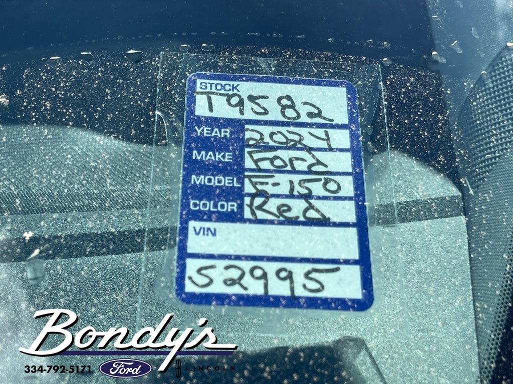 2024 Ford F-150 XLT 4WD, 4-Wheel Disc Brakes, 400W Cab & Bed Outlets, 4x4 FX4 Off-Road Bodyside Decal, 6 Speakers, ABS brakes, Adaptive Cruise Control w/Stop & Go, Air Conditioning, Alloy wheels, AM/FM radio: SiriusXM with 360L, Auto High-beam Headlights, Auto-Dimming Rear-View Mirror, Auto-dimming Rear-View mirror, Automatic temperature control, Brake assist, Bumpers: chrome, Chrome wheels, Cloth 40/20/40 Front Seat, Cloth 40/Console/40 Front Seats, Compass, Delay-off headlights, Driver door bin, Driver vanity mirror, Dual front impact airbags, Dual front side impact airbags, Electronic Stability Control, Emergency communication system: SYNC 4 911 Assist, Equipment Group 302A Mid, Ford BlueCruise Equipped (90-Day Trial), Front anti-roll bar, Front Center Armrest w/Storage, Front dual zone A/C, Front fog lights, Front License Plate Bracket, Front reading lights, Front wheel independent suspension, Fully automatic headlights, FX4 Off-Road Package, GVWR: 6,650 lbs Payload Package, Heated door mirrors, Heated Front Seats, Hill Descent Control, Illuminated entry, Intelligent Access w/Push Button Start, Low tire pressure warning, Monotube Rear Shocks, Navigation system: Connected Navigation, Occupant sensing airbag, Off-Road Tuned Front Shock Absorbers, Outside temperature display, Overhead airbag, Overhead console, Panic alarm, Passenger door bin, Passenger vanity mirror, Power door mirrors, Power driver seat, Power Glass Heated Sideview Mirrors, Power steering, Power windows, Power-Sliding Rear Window, Radio data system, Radio: AM/FM SiriusXM w/360L, Rear reading lights, Rear step bumper, Rear window defroster, Remote keyless entry, Remote Start System w/Remote Tailgate Release, Rock Crawl Mode, Security system, Speed control, Speed Sign Recognition, Split folding rear seat, Steering wheel mounted audio controls, SYNC 4 w/Enhanced Voice Recognition, Tachometer, Telescoping steering wheel, Tilt steering wheel, Tough Bed Spray-In Bedliner, Traction control, Tray Style Floor Liner, Trip computer, Variably intermittent wipers, Voltmeter, Wheels: 18 Chrome-Like PVD, 4WD. Red Metallic 4WD