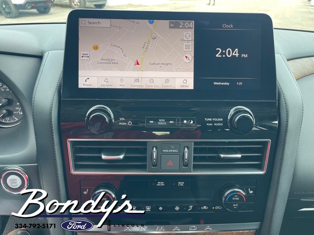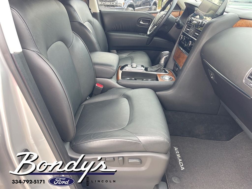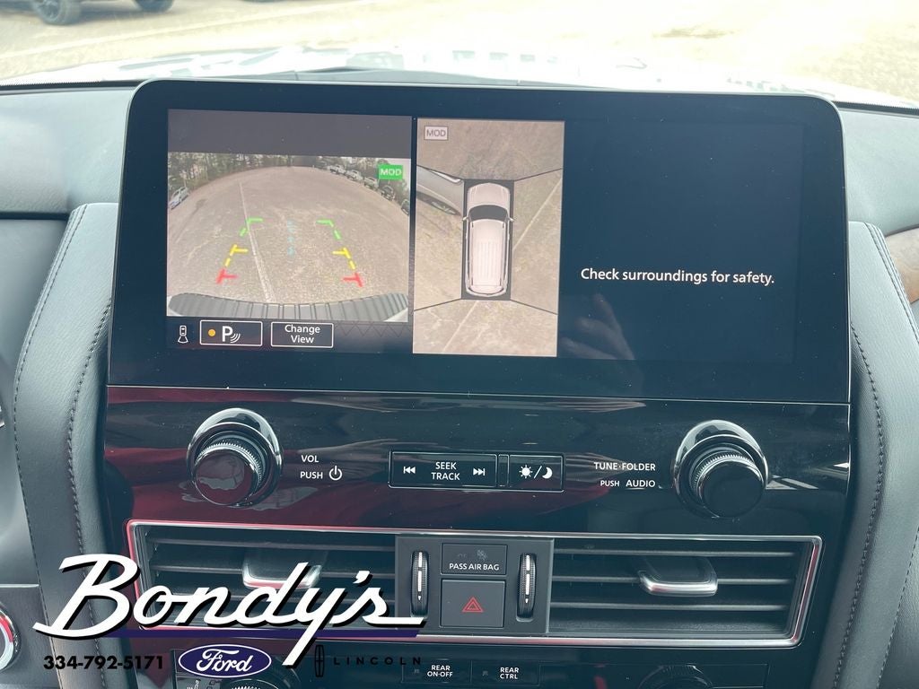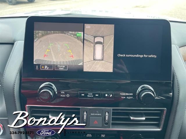 2024 Nissan Armada SL 13 Speakers, 2.937 Axle Ratio, 3rd Row Carpeted Floor Mats - Bench Seat, 3rd row seats: split-bench, 4-Wheel Disc Brakes, ABS brakes, Air Conditioning, Alloy wheels, AM/FM radio: SiriusXM, Anti-whiplash front head restraints, Auto High-beam Headlights, Auto tilt-away steering wheel, Auto-dimming door mirrors, Auto-dimming Rear-View mirror, Auto-leveling suspension, Automatic temperature control, Brake assist, Bumpers: body-color, Cargo Package, Delay-off headlights, Driver door bin, Driver vanity mirror, Dual front impact airbags, Dual front side impact airbags, Electronic Stability Control, Emergency communication system: NissanConnect Services, Exterior Parking Camera Rear, Four wheel independent suspension, Front anti-roll bar, Front Bucket Seats, Front Center Armrest, Front dual zone A/C, Front fog lights, Front reading lights, Fully automatic headlights, Garage door transmitter: HomeLink, Heated door mirrors, Heated Front Bucket Seats, Heated front seats, Heated steering wheel, HVAC memory, Illuminated entry, Illuminated Kick Plates, Knee airbag, Leather Shift Knob, Leather steering wheel, Leather-Appointed Seat Trim, Low tire pressure warning, Memory seat, Navigation System, Nissan USB Charging Cable Set, Occupant sensing airbag, Outside temperature display, Overhead airbag, Overhead console, Panic alarm, Passenger door bin, Passenger vanity mirror, Power door mirrors, Power driver seat, Power Liftgate, Power moonroof, Power passenger seat, Power steering, Power windows, Radio: NissanConnect w/SiriusXM, Rear air conditioning, Rear anti-roll bar, Rear reading lights, Rear seat center armrest, Rear window defroster, Rear window wiper, Reclining 3rd row seat, Remote keyless entry, Roof Rail Cross Bars - Silver, Security system, Speed control, Speed-sensing steering, Speed-Sensitive Wipers, Split folding rear seat, Spoiler, Steering wheel memory, Steering wheel mounted audio controls, Tachometer, Telescoping steering wheel, Tilt steering wheel, Traction control, Trip computer, Turn signal indicator mirrors, Variably intermittent wipers, Voltmeter, Wheels: 20 x 8J Painted Alloy. Brilliant Silver Metallic RWD