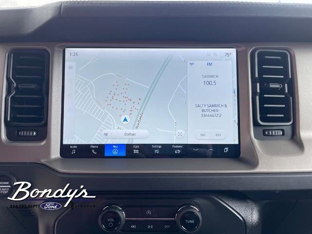 2025 Ford Bronco Outer Banks 18 Bright Machined Aluminum Wheels, 3.73 Axle Ratio, 4-Wheel Disc Brakes, 7 Speakers, ABS brakes, Air Conditioning, Alloy wheels, AM/FM radio: SiriusXM with 360L, AM/FM Stereo, Auto High-beam Headlights, Auto-dimming Rear-View mirror, Automatic temperature control, Brake assist, Compass, Connected Navigation, Delay-off headlights, Driver door bin, Driver vanity mirror, Dual front impact airbags, Dual front side impact airbags, Electronic Stability Control, Emergency communication system: 911 Assist, Equipment Group 312A Mid Package, Exterior Parking Camera Rear, Front anti-roll bar, Front Bucket Seats, Front Center Armrest, Front dual zone A/C, Front fog lights, Front License Plate Bracket, Front reading lights, Front wheel independent suspension, Fully automatic headlights, Hard Top Sound Deadening Headliner, Heated door mirrors, Heated front seats, Heated Leather-Trimmed/Vinyl Bucket Seats, Heated steering wheel, Illuminated entry, Integrated roll-over protection, Internet access capable: FordPass Connect, Leather Shift Knob, Low tire pressure warning, Navigation system: Connected Navigation, Occupant sensing airbag, Outside temperature display, Overhead airbag, Overhead console, Painted Hard Top, Panic alarm, Passenger door bin, Passenger vanity mirror, Power door mirrors, Power driver seat, Power passenger seat, Power steering, Power windows, Radio data system, Rear seat center armrest, Rear-Window Defroster & Washer, Remote keyless entry, Security system, SiriusXM w/360L, Speed control, Split folding rear seat, Steering wheel mounted audio controls, SYNC 4, Tachometer, Telescoping steering wheel, Tilt steering wheel, Traction control, Trip computer, Variably intermittent wipers, Voltmeter. Desert Sand 4WD