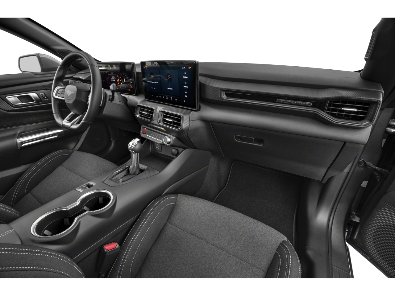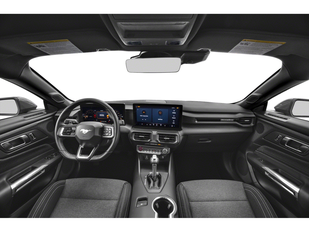 2025 Ford Mustang GT 3.55 Limited Slip Rear Axle, 4-Wheel Disc Brakes, 9-Speaker Stereo System, ABS brakes, Air Conditioning, Alloy wheels, AM/FM Stereo, Auto High-beam Headlights, Automatic temperature control, Brake assist, Bumpers: body-color, Cloth/Vinyl Heated Bucket Seats, Compass, Delay-off headlights, Driver door bin, Driver vanity mirror, Dual front impact airbags, Dual front side impact airbags, Electronic Stability Control, Emergency communication system: 911 Assist, Equipment Group 301A High Package, Exterior Parking Camera Rear, Four wheel independent suspension, Front anti-roll bar, Front Bucket Seats, Front Center Armrest, Front dual zone A/C, Front reading lights, Fully automatic headlights, Illuminated entry, Internet access capable: FordPass Connect, Knee airbag, Leather Shift Knob, Leather steering wheel, Low tire pressure warning, Occupant sensing airbag, Outside temperature display, Overhead airbag, Overhead console, Panic alarm, Passenger door bin, Passenger vanity mirror, Power door mirrors, Power steering, Power windows, Radio data system, Rain sensing wipers, Rear anti-roll bar, Rear Parking Sensors, Rear window defroster, Remote keyless entry, Speed control, Speed-sensing steering, Speed-Sensitive Wipers, Split folding rear seat, Spoiler, Sport steering wheel, Steering wheel mounted audio controls, SYNC 4, Tachometer, Telescoping steering wheel, Tilt steering wheel, Traction control, Trip computer, Variably intermittent wipers, Voltmeter. Shadow Black RWD